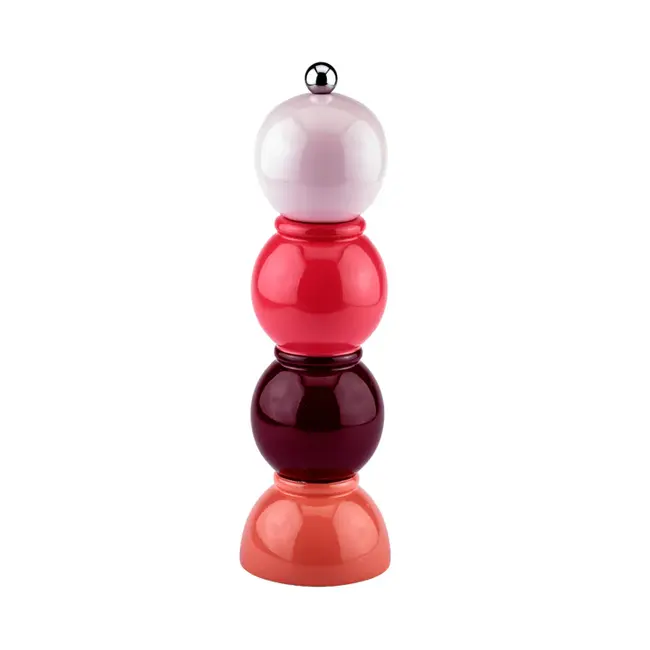 Met de Addison Ross Bobbin Multi Pink haal je een ware eyecatcher in huis. Deze molen is niet alleen een functioneel instrument voor het malen van peper of zout, maar ook een vrolijk decoratieobject. De verschillende lagen roze lopen prachtig in elkaar over, wat het golvende ontwerp extra benadrukt. Het is de perfecte molen voor wie houdt van een kleurrijk interieur en graag een glimlach op het gezicht van zijn gasten tovert tijdens het diner.