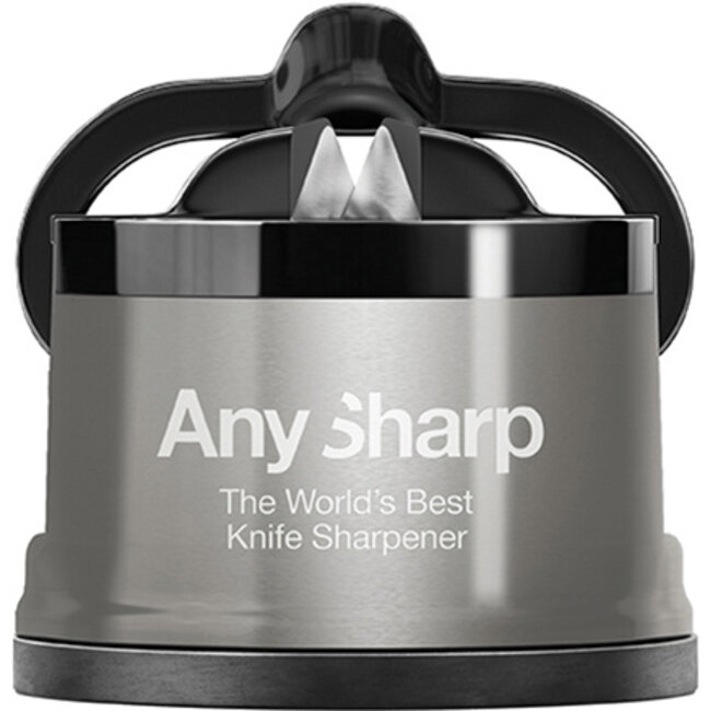 Veiligheid en Stabiliteit Het unieke aan de AnySharp Pro is de gepatenteerde PowerGrip-zuignap. Je bevestigt de slijper met één handbeweging op elk glad oppervlak (zoals je aanrecht of een tegelwand). Hierdoor staat de slijper muurvast en blijven je handen altijd op veilige afstand van het mes. De metalen behuizing van deze Pro-editie zorgt voor extra duurzaamheid en een stijlvolle look die prachtig staat in elke moderne keuken.
