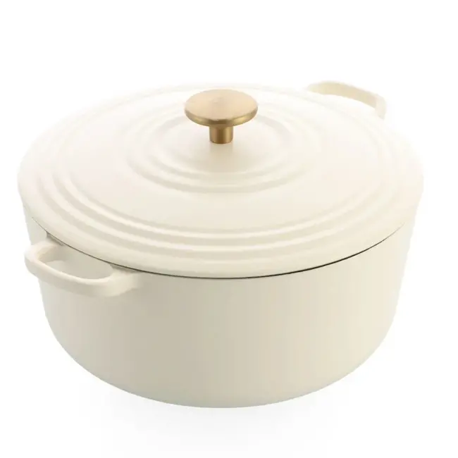 Met zijn hippe cream kleur is de Bourgogne braadpan niet alleen functioneel, maar ook een stijlvolle toevoeging aan elke keuken. Het stevige gietijzeren materiaal en de goed sluitende deksel zorgen ervoor dat smaken en voedingsstoffen optimaal behouden blijven. Deze veelzijdige braadpan is geschikt voor alle warmtebronnen, inclusief inductie en oven, waardoor je elke kooktechniek moeiteloos kunt toepassen.