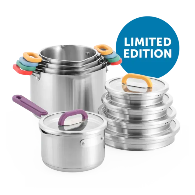 Een limited edition voor de liefhebber Van deze set zijn er slechts 1851 stuks geproduceerd (een verwijzing naar het oprichtingsjaar van BK). Elke pan heeft handgrepen in een andere kleur, wat niet alleen vrolijk staat op het fornuis, maar ook helpt om direct de juiste maat pan te herkennen. Bovendien is de set volledig stapelbaar, waardoor hij nauwelijks ruimte inneemt in je keukenkastjes.