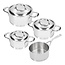 Til je kookkunsten naar een hoger niveau met de Atlantis 7 startset, een complete set van vier hoogwaardige pannen van roestvrij staal. De set bestaat uit drie kookpannen (16, 18 en 20 cm) en een handige steelpan (16 cm), perfect voor sauzen, groenten, bouillons en snelle bereidingen. Dankzij de geavanceerde TriplInduc® technologie kook je op inductie tot 30% efficiënter en geniet je van optimale temperatuurcontrole.