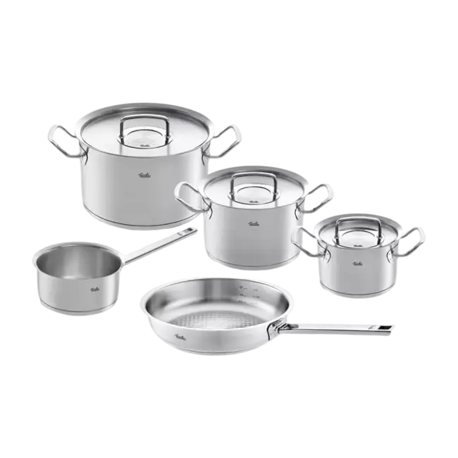 Haal professionele kwaliteit in huis met de Fissler Original-Profi Collection® 5-delige set. Deze serie is oorspronkelijk ontwikkeld door professionals voor professionals en is al decennia lang de standaard in de topkeuken. De pannen zijn vervaardigd uit zwaar, matglanzend roestvrij staal 18/10, wat ze niet alleen onverwoestbaar maakt, maar ook bestand tegen krassen en vlekken. Dankzij het iconische design en de extreem hoge afwerkingsgraad is dit een set die generaties lang meegaat.