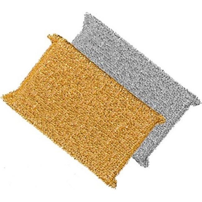 De spons is gevuld met een absorberende kern die water en afwasmiddel goed vasthoudt, waardoor je met een kleine hoeveelheid zeep een rijk schuim creëert. De gouden en zilveren kleur zijn niet alleen decoratief; de Lurex-draad zorgt voor net dat beetje extra 'grip' op het vuil vergeleken met een standaard vaatdoek of zachte spons.