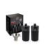 In deze doos vind je een Line-pepermolen en een Line-zoutmolen van 12 cm in matzwart, een roestvrijstalen trechtertje, een zakje zwarte peper en een zakje droog zout (steenzout).