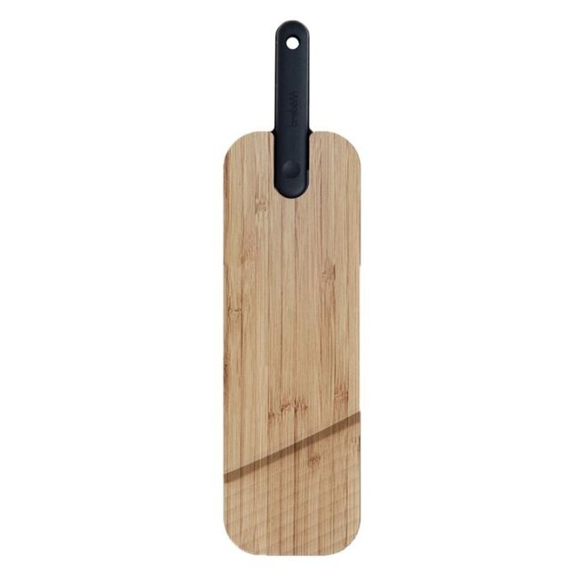 Deze snijplank 'Artu' van Trebonn bevat een in de plank geïntegreerd salamimes. Zo heb je altijd een mes bij de hand wanneer je salami of worst wilt snijden. Dankzij de geribbelde afwerking aan het uiteinde van de plank, kun je de plakjes salami in precies dezelfde dikte snijden. De snijplank is gemaakt van bamboe en heeft een anti-slip bodem. Het mes is gemaakt van hoogwaardig, Japans roestvrijstaal en heeft een anti-slip handgreep, zodat je extra grip hebt tijdens het snijden. Het mes kan na gebruik weer in de snijplank worden geschoven. Dankzij de veilige, magnetische sluiting zal deze niet uit de plank kunnen vallen.