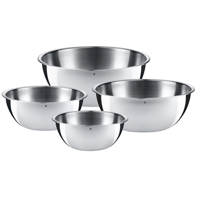 De Gourmet Keukenschalenset van WMF komt in iedere keuken van pas. De 4-delige set is ideaal voor het mengen van ingrediënten, het serveren van gerechten of au bain-marie smelten van chocolade. Alle keukenschalen hebben een brede schenkrand waardoor u kunt schenken zonder te morsen. De set is vormvast, duurzaam, smaakneutraal, hygiënisch en vaatwasmachinebestendig dankzij het hoogwaardige Cromargan® 18/10 roestvrij staal.